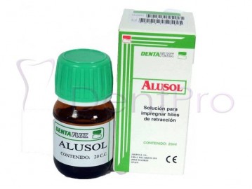 El Alusol Cloruro aluminio 20% de Dentaflux es un líquido de cloruro de aluminio para impregnar. Esta solución sirve para impregnar el hilo de retracción, retrae el tejido gingival de forma temporal y reduce las hemorragias y secreciones para facilitar las impresiones