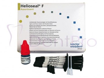 | Características: Indicaciones Clínicas Indicado para el sellado preventivo de fosas y fisuras en molares y premolares en niños, adolescentes y adultos con alto riesgo de caries, así como para el sellado de restauraciones preventivas de resina. Ventajas del HELIOSEAL F KIT 5x1.25gr, de Ivoclar Vivadent para el Profesional