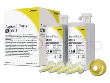 | Características: Indicaciones Clínicas Como material de cubeta (masilla) para la técnica de doble impresión (dos pasos) en todo tipo de prótesis fija, dispensado a través de una máquina mezcladora como la Duomix. Ventajas del AQUASIL ULTRA DECA PUTTY para el Profesional