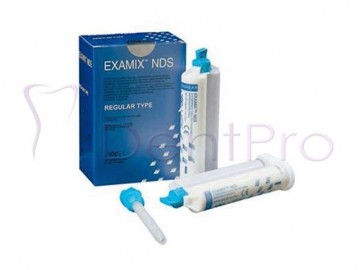 | Características: Indicaciones Clínicas Ideal para la técnica de impresión monofásica, donde un solo material se usa en cubeta y jeringa. También como material de cubeta en la técnica de doble mezcla para impresiones de coronas, puentes y prótesis sobre implantes. Ventajas del EXAMIX NDS REGULAR AZUL 2x48ml para el Profesional
