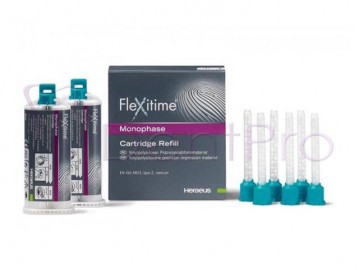 | Características: Indicaciones Clínicas Ideal para la técnica de impresión monofásica en casos de coronas individuales, puentes cortos, impresiones de transferencia y modelos de estudio. También puede usarse como material pesado en la técnica de doble mezcla. Ventajas del FLEXITIME MONOPHASE 2x50ml, de Kulzer para el Profesional