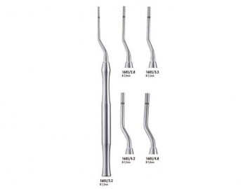 | Características: La parte activa es cóncava y con un afilado medio, mediante la cual se puede extraer y condensar el material óseo bajo la membrana del seno maxilar. -Disponible en Ø 2,2mm; 2,8mm; 3,5mm; 4,2mm y 4,8mm. -De uso profesional. | Contenido: 1 Unidad. Referencia(s) del Fabricante: 1605/2.2, 1605/2.8, 1605/3.5, 1605/4.2, 1605/4.8 |